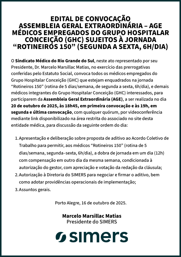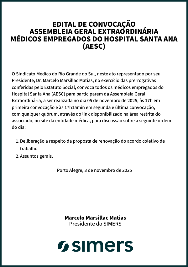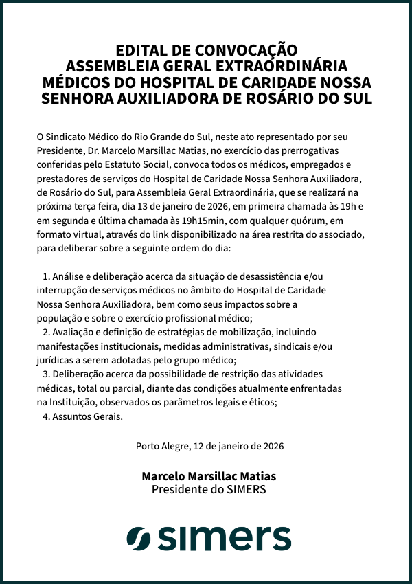 Publicações Legais do Sindicato Médico do Rio Grande do Sul