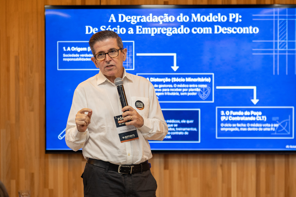 “Esse tema deixou de ser secundário e passou a ser estrutural. Em muitos cenários, passou de escolha para regra. O problema não está no modelo, mas no que se tornou o vínculo na prática, sem proteção jurídica, trabalhista e tributária”, apontou o coordenador do Núcleo Médico Jovem do Simers, Vinícius Conejo.