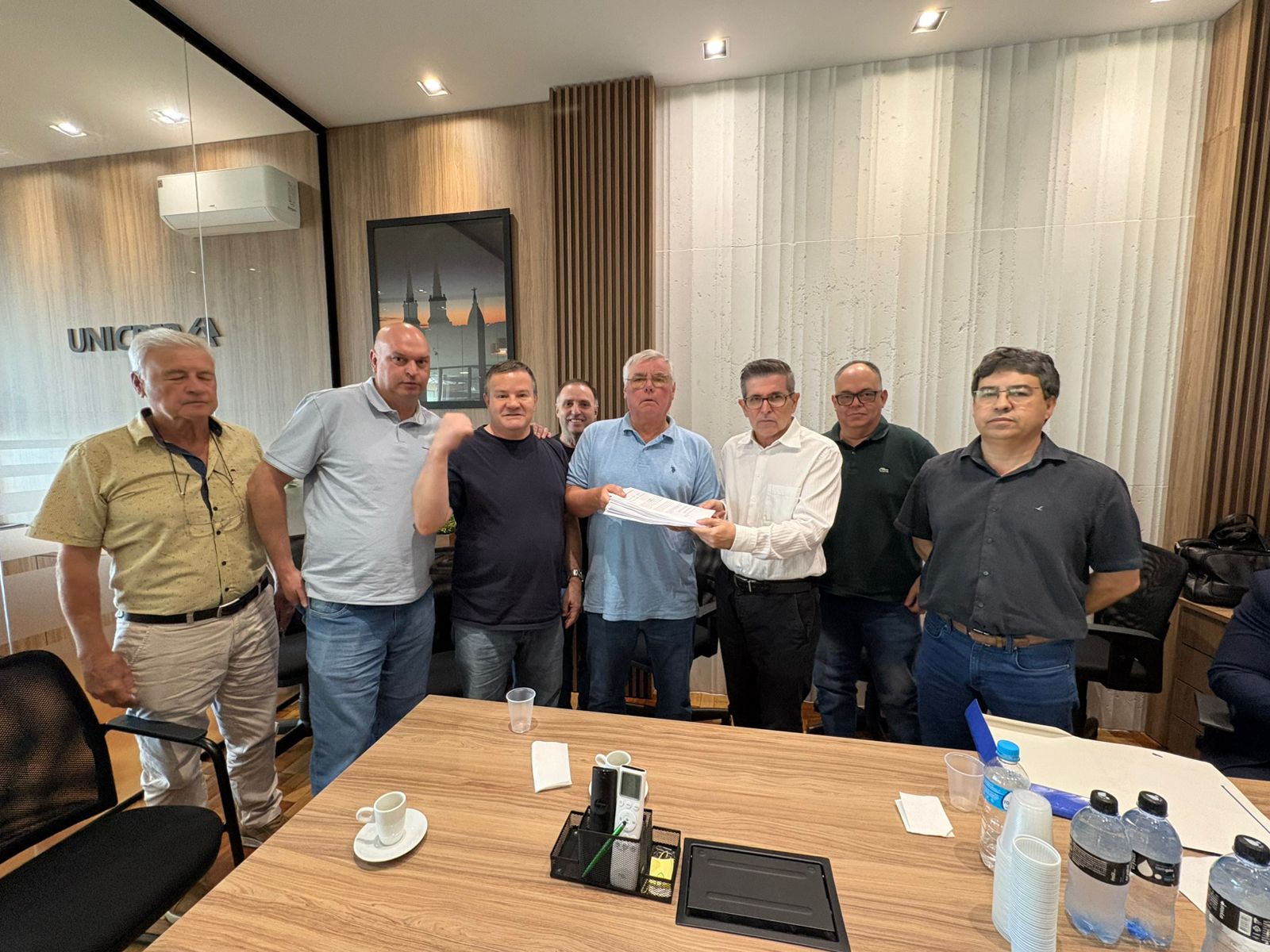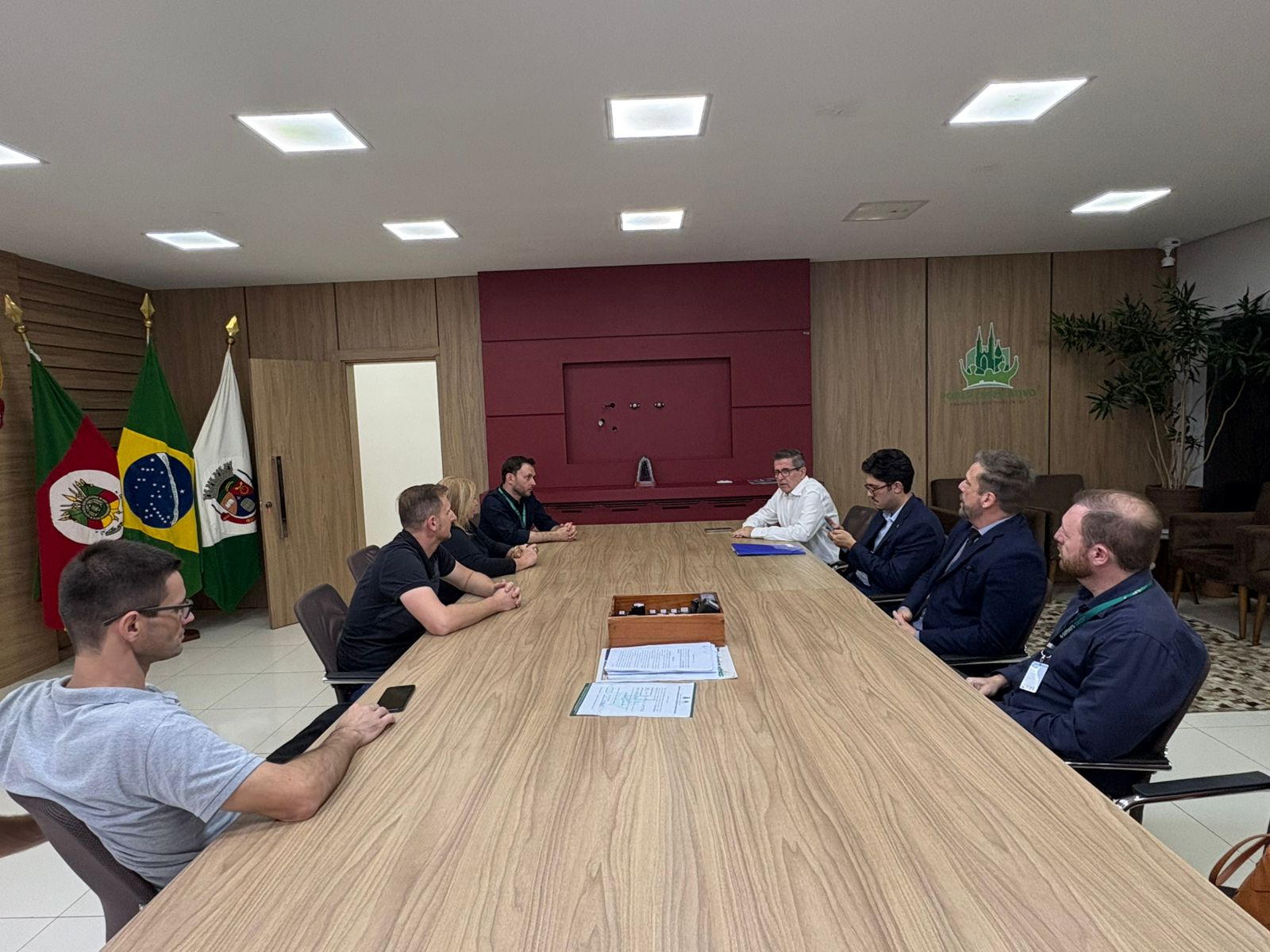 Após a reunião na sede da prefeitura, o Sindicato foi recebido pelos vereadores Leandro Mazutti (PDT), Marizete Frozzi (MDB) e Marcos Vinicius (PL).