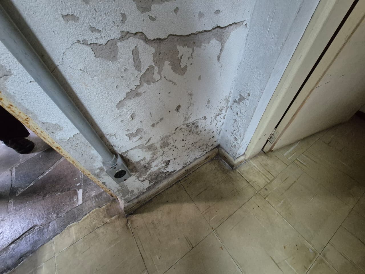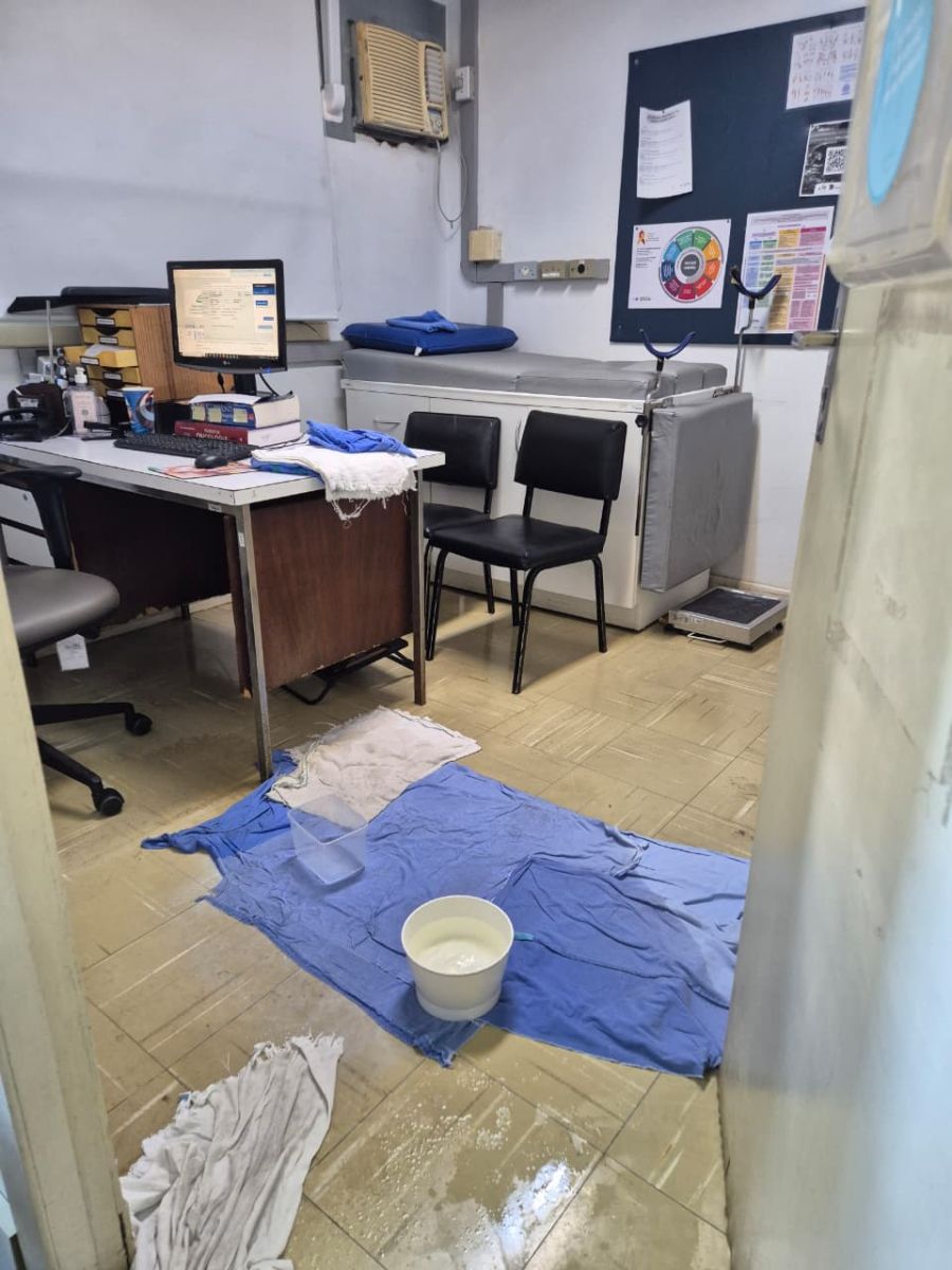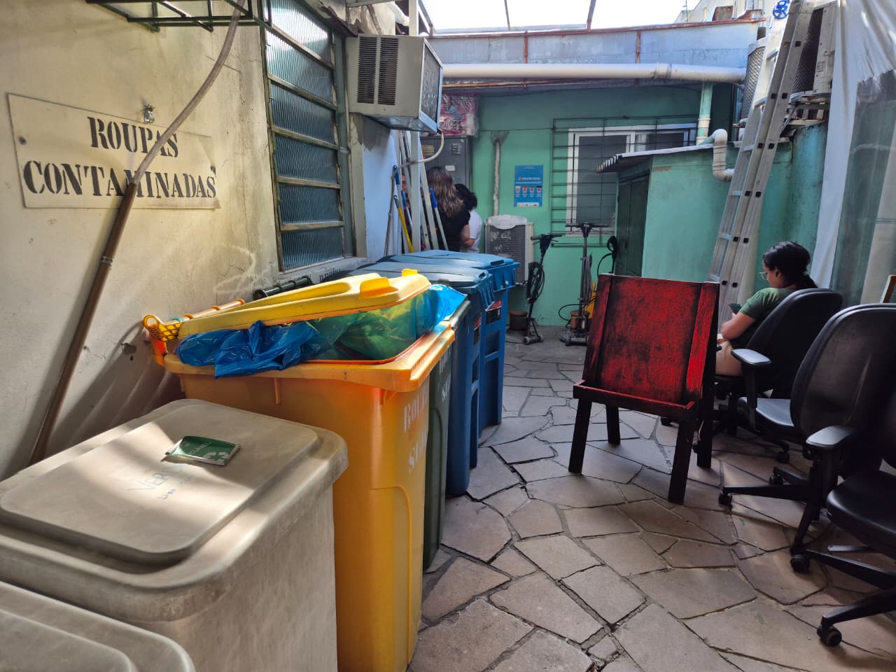 Durante a visita técnica, constatou-se a presença de goteiras, mofo e piso danificado. Verificou-se ainda que alguns pacientes aguardam atendimento em área destinada ao armazenamento de lixo e roupas contaminadas. O mesmo ambiente também é utilizado como local de descanso dos médicos. A unidade não dispõe de rota de fuga adequada nem de condições de acessibilidade.