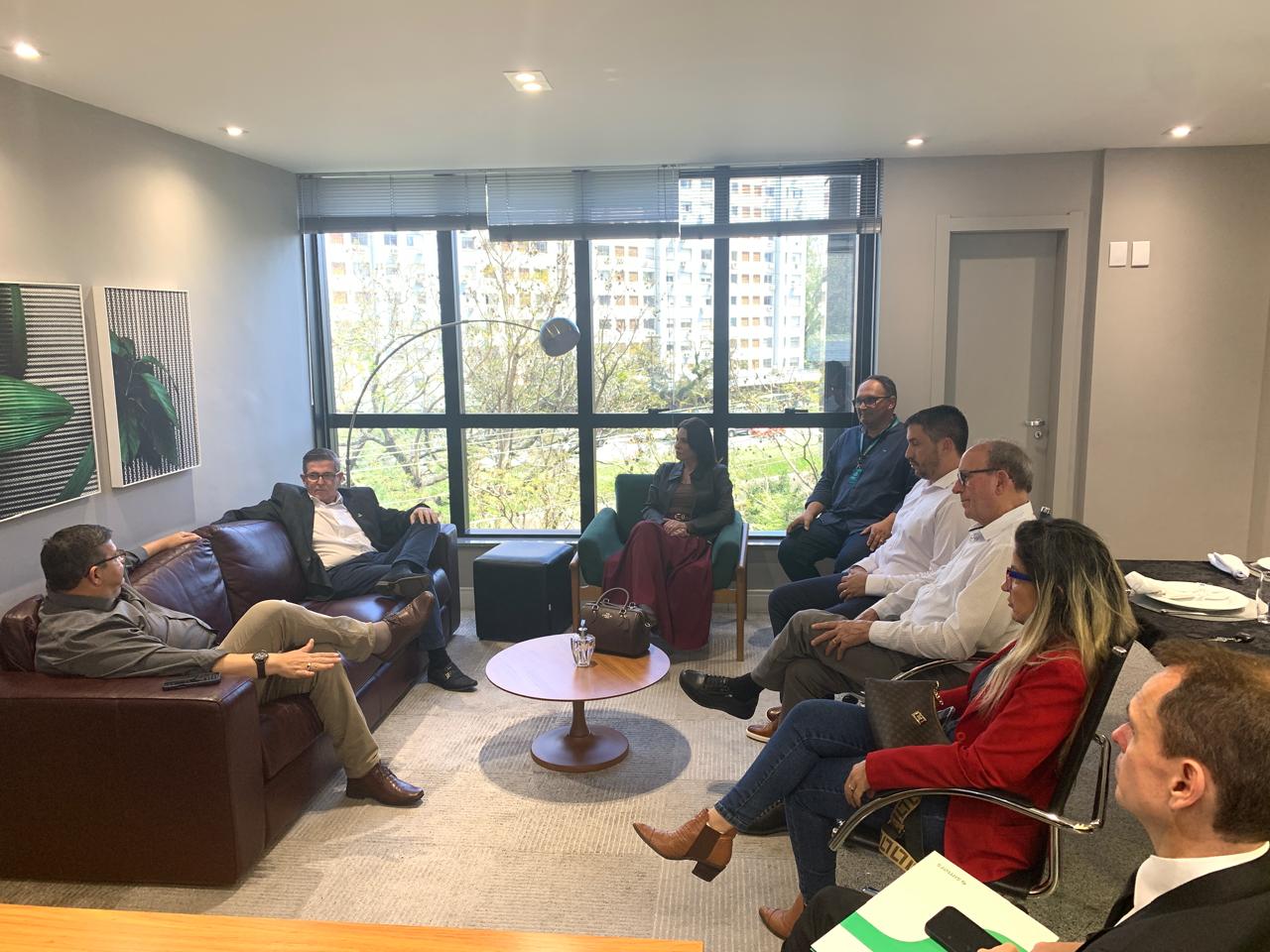 O presidente do Sindicato Médico do Rio Grande do Sul (Simers), Marcelo Matias, recebeu o prefeito e o vice de Sapucaia do Sul, Volmir Rodrigues e Nestor Bernardes, nesta quinta-feira, 2, na sede da entidade. Eles vieram acompanhados dos secretários de Saúde e de Proteção e Desenvolvimento Social, Flávia Motta e Evandro Salermo. A diretora do Simers na Região Metropolitana, Alessandra Felicetti, também participou do diálogo sobre temas ligados à crise na Saúde que os municípios enfrentam e as consequências para a categoria: o atraso nos pagamentos.