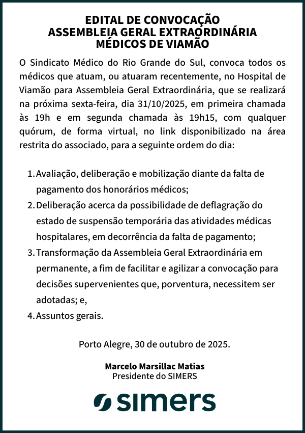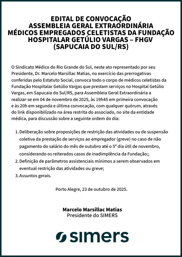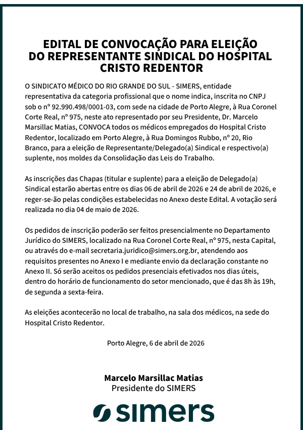 Publicações Legais do Sindicato Médico do Rio Grande do Sul