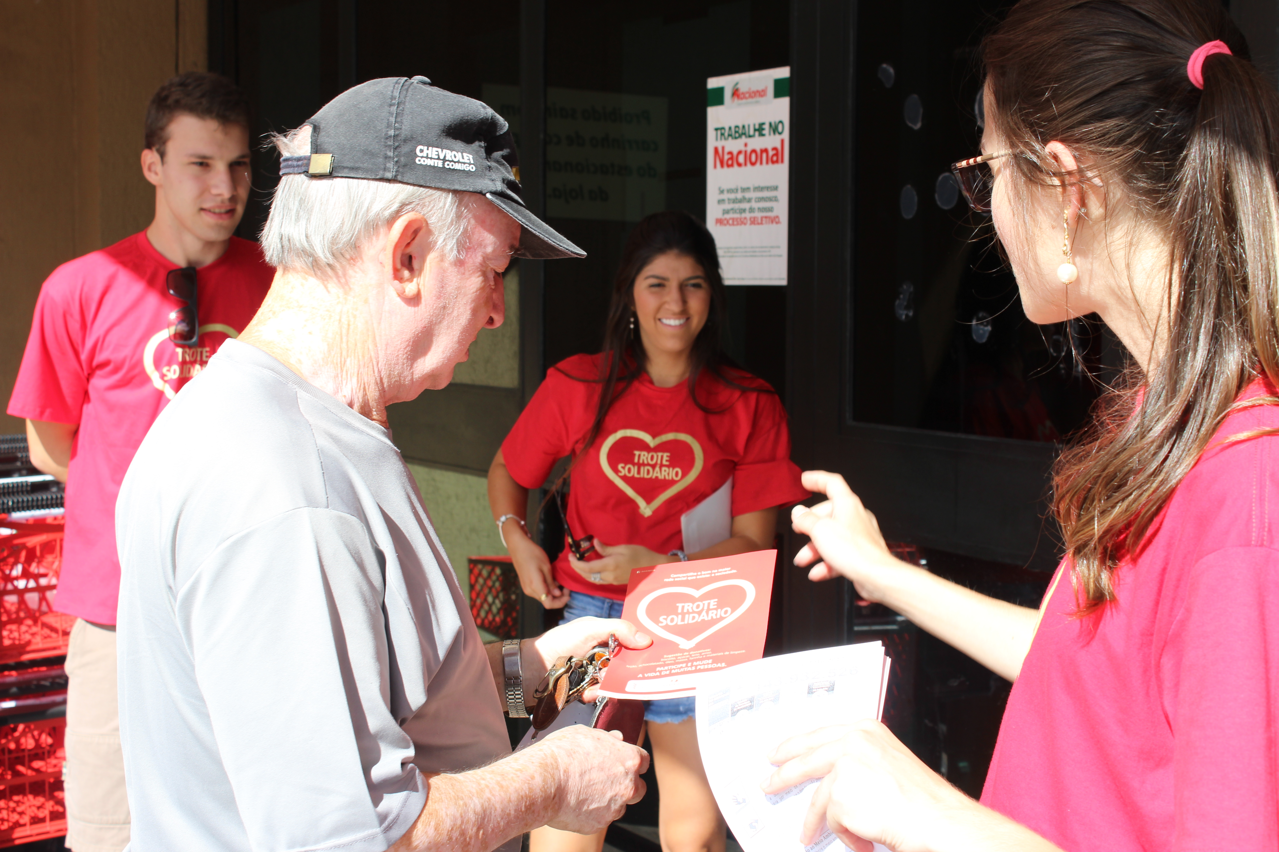 Identificados com a camiseta do projeto, os estudantes abordaram os clientes com folders contendo informações da campanha. Foram dezenas de carrinhos cheios de alimentos não perecíveis, em mais uma ação do Trote Solidário, que chega ao seu décimo ano. Para o presidente do NAS, Gustavo Pesenatto, a importância da iniciativa é a oportunidade que os alunos de Medicina ganham de, já no primeiro semestre, começarem a ajudar a população. “Com o projeto, hoje o estudante de Medicina já entra na universidade podendo ajudar a sociedade em que ele vive, doando sangue e na arrecadação de donativos, que depois são distribuídos para instituições. E o melhor disso tudo é que veteranos e calouros sempre se mobilizam bastante para a ação de solidariedade”, afirmou Gustavo.