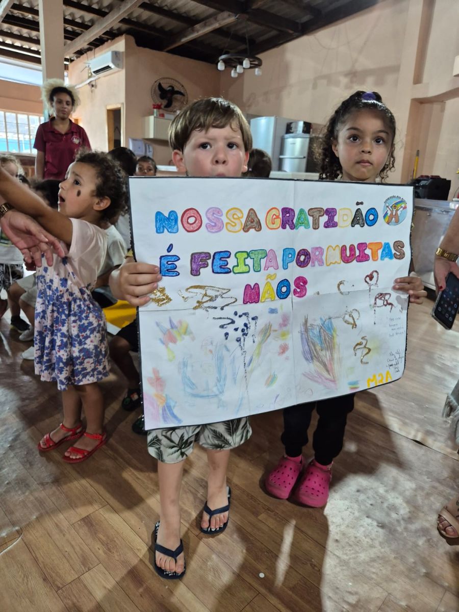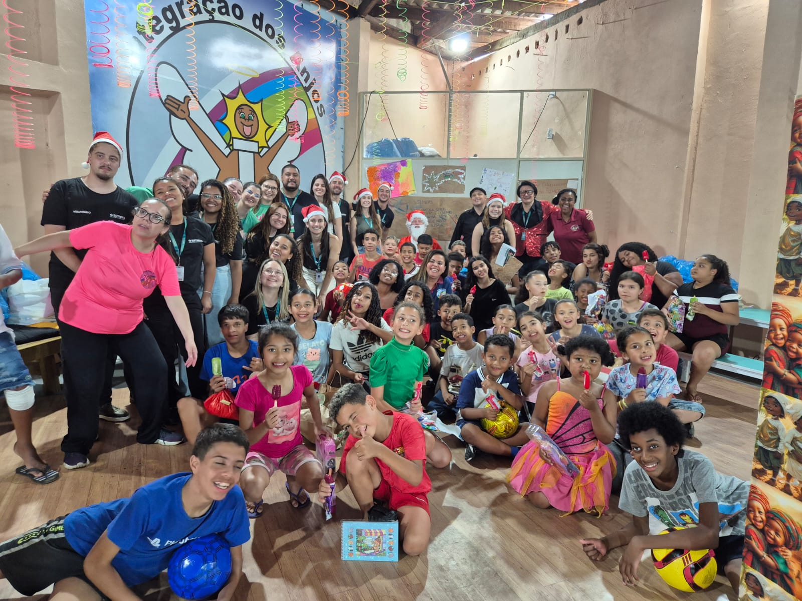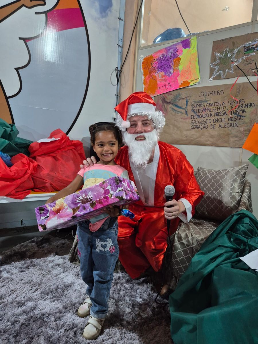 Durante a ação, as crianças receberam os presentes e interagiram com o Papai Noel e seus auxiliares, em um momento marcado por sorrisos, emoção e troca de carinho.