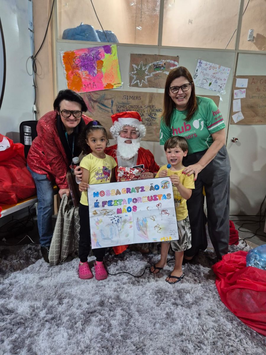 O Hub de Solidariedade do Simers promoveu, no dia 12 de dezembro, uma ação especial de Natal que beneficiou 235 crianças atendidas pela ONG Integração dos Anjos. A iniciativa teve como objetivo levar alegria, afeto e esperança por meio da adoção de cartinhas escritas pelas crianças ao Papai Noel.