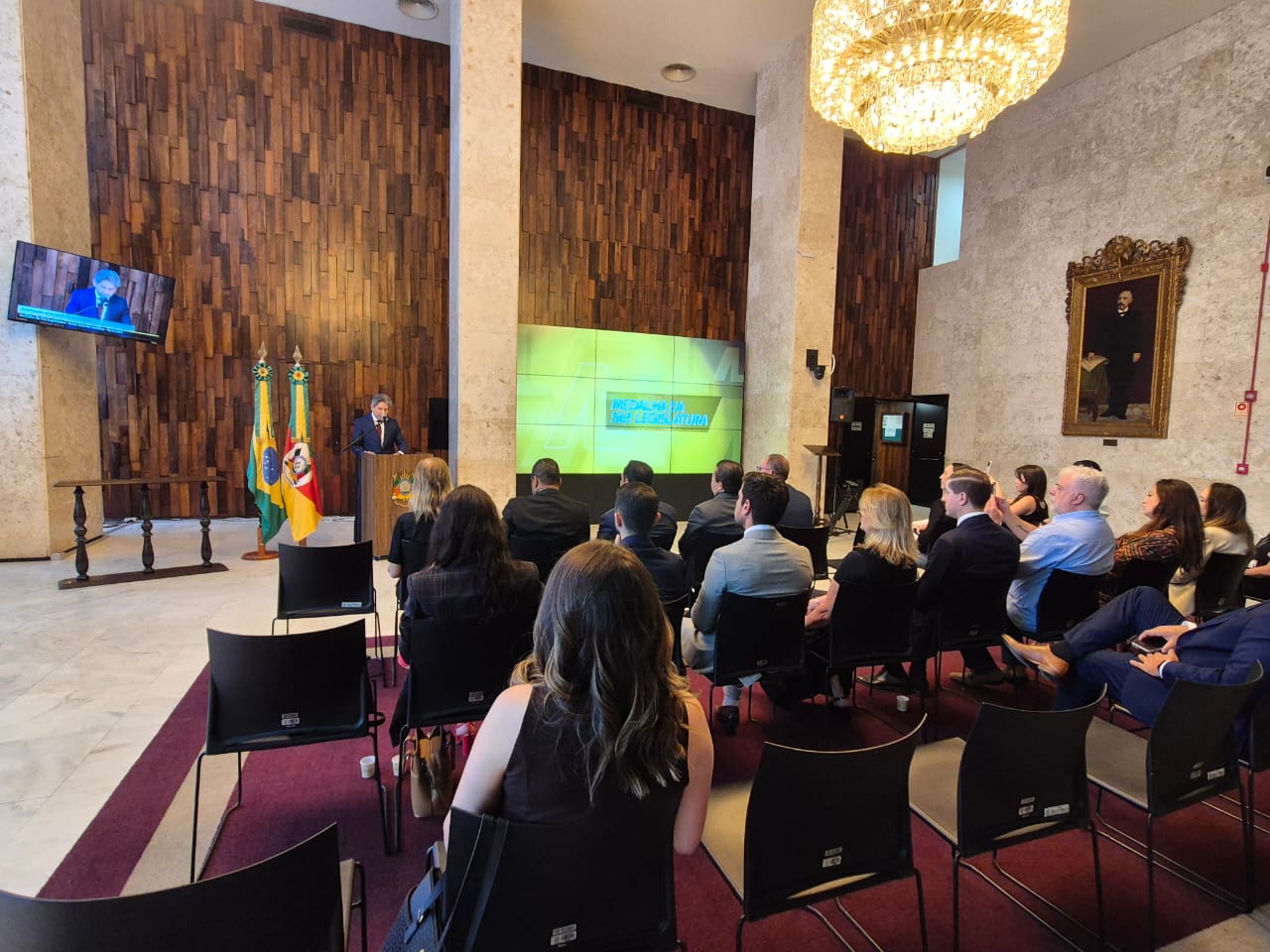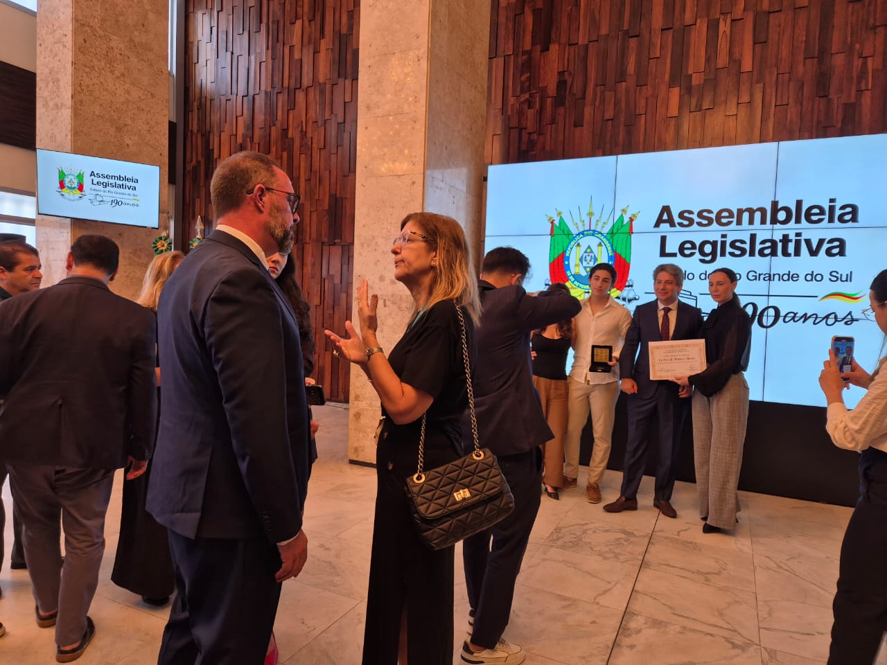 A Assembleia Legislativa do Rio Grande do Sul realizou, nesta terça-feira, dia 16, a solenidade de entrega da Medalha da 56ª Legislatura a Carlos de Moura Júnior. O evento ocorreu no Salão Júlio de Castilhos, no Palácio Farroupilha, reunindo autoridades, convidados e representantes de instituições ligadas às causas sociais.