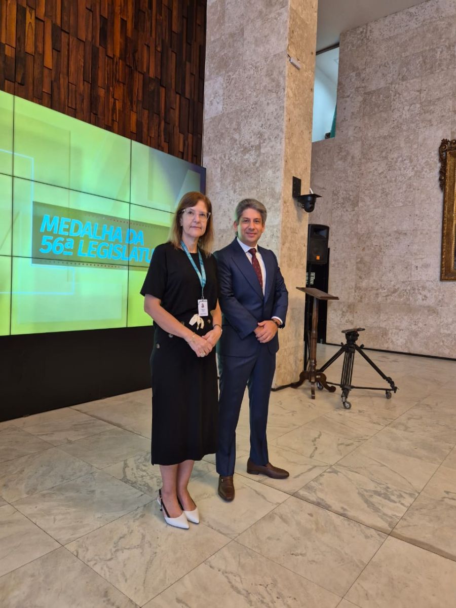 Após a solenidade, Valerie aproveitou para dialogar com o deputado Cláudio Branchieri, relator da homenagem, levando pautas relacionadas à pediatria e aos desafios enfrentados pela área. O parlamentar demonstrou abertura ao diálogo e disposição para ouvir as demandas apresentadas.