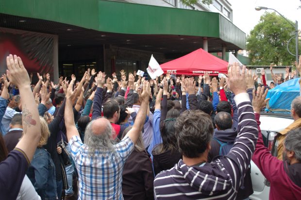 O Sindicato Médico do Rio Grande do Sul (SIMERS) participou naquinta-feira (27/10) da assembleia unificada dos profissionais, em frente à sede do Hospital Conceição. “Os médicos também não aceitam essa proposta do Sindihospa. Os trabalhadores nunca mais vão recuperar o que não foi recomposto, portanto é o momento de nos unirmos, lutarmos e resistirmos”, afirmou o diretor do Sindicato Médico do Rio Grande Sul (SIMERS), Jorge Eltz, adiantando que no dia11 de novembroestá programada nova assembleia unificada para definir os rumos da negociação."